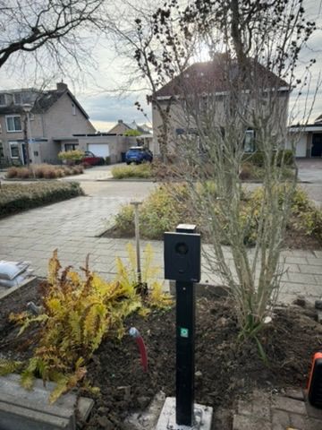 Strakke en nette installatie met kabel in buis naar de grond. Functioneel, veilig en volgens de norm uitgevoerd.